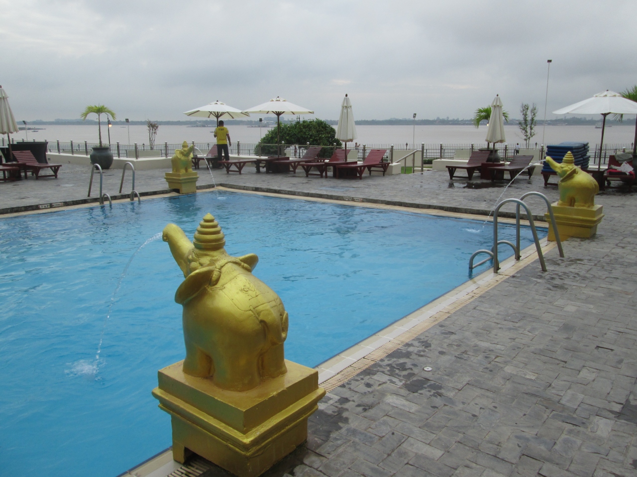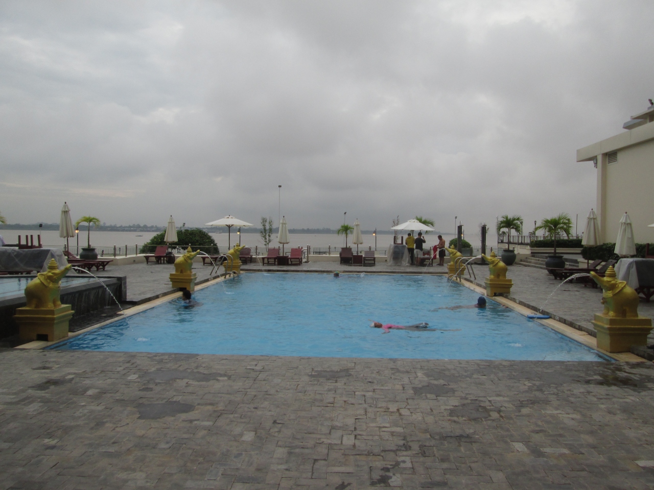 トンレサップ川通り沿いに建つホテルに宿泊しました。プノンペン滞在中に1度は見かける川ですが、1階にプールがあるホテルで日当たりが良く、川の景色を一望できる抜群のプールがありました。プノンペンに来たことを実感しながら、ホテルライフを楽しむことができました。