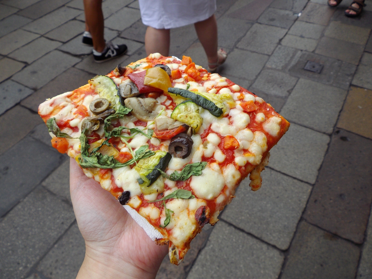 リアルト橋近くにあるお店でピザをテイクアウトして食べ歩き。