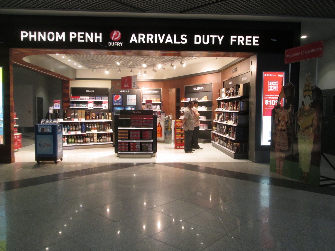 通常、免税店は出国審査が終了したエリアにあるものですが、プノンペン国際空港は到着階にもありました。コンパクトな空港でしたが入国審査前の制限区域内にお店がありました。定番のコスメ、タバコ、アルコールがこちらで購入できました。
