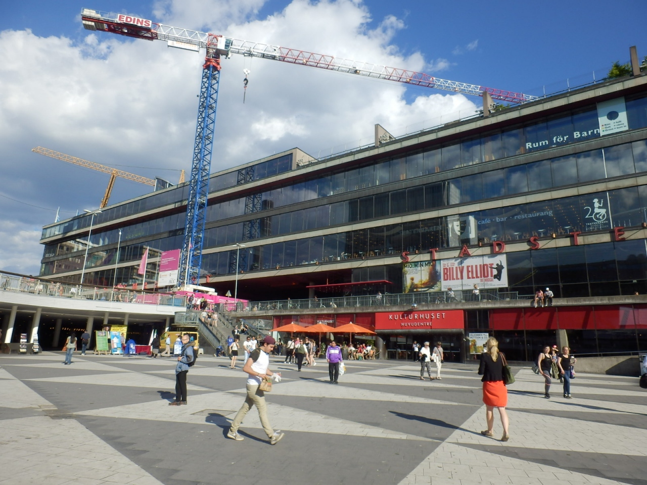 地下鉄の中央駅を出て鉄道駅とは反対側へ歩いたら、こちらに辿り着きました。広場に隣接して、ガラス張りの文化会館がありました。残念ながら広場は工事中で、塔は見られなかったのですが、文化会館の中にはビジターセンターがあって、ストックホルムの街の勉強が出来て良かったです。