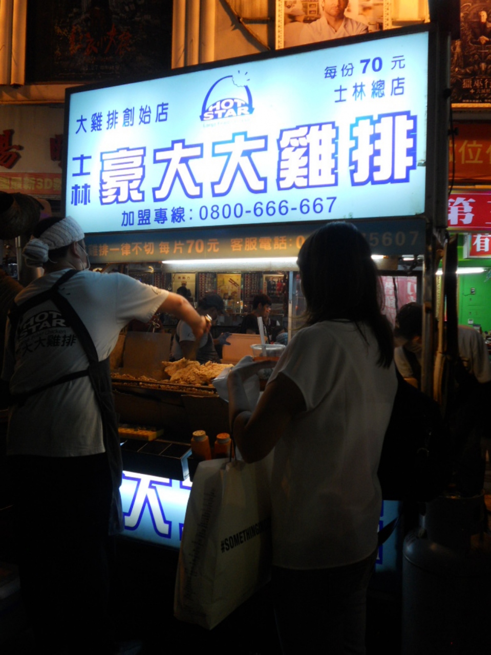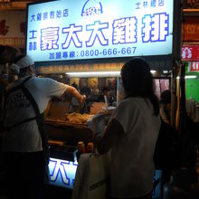 士林夜市をぶらぶら歩いていたら見つけたので、並んでみました。このお店のことは聞いたことがありましたが、沢山の人が並んでいるのをみると、やはり名物店なんだなぁと実感しました。巨大なフライドチキンは、揚げたて熱々のものが食べられます。並んでいる人は多かったですが、お店の人の手際がいいので、そこまで長く待つことはなかったです。