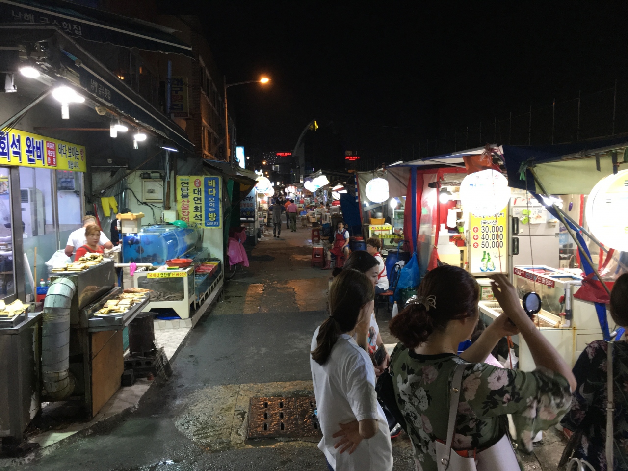 7月22日(土)20時ちょっと過ぎに行きましたチャガルチ市場、この夏場だから?でしょうか(かつての祖父は漁師だった)魚介類の種類は少ないし身がしまっていないので。
