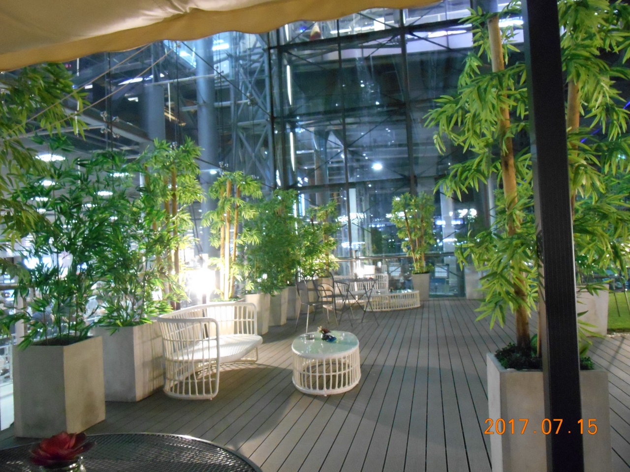 喫煙コーナーは屋外なので長時間の滞在は暑くて無理ですが、丁度入国審査の外に位置するので、入国審査待ちの長い行列を見ながら、飲み物片手で一服できます。