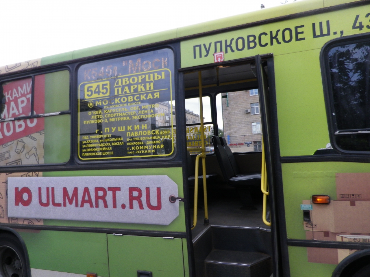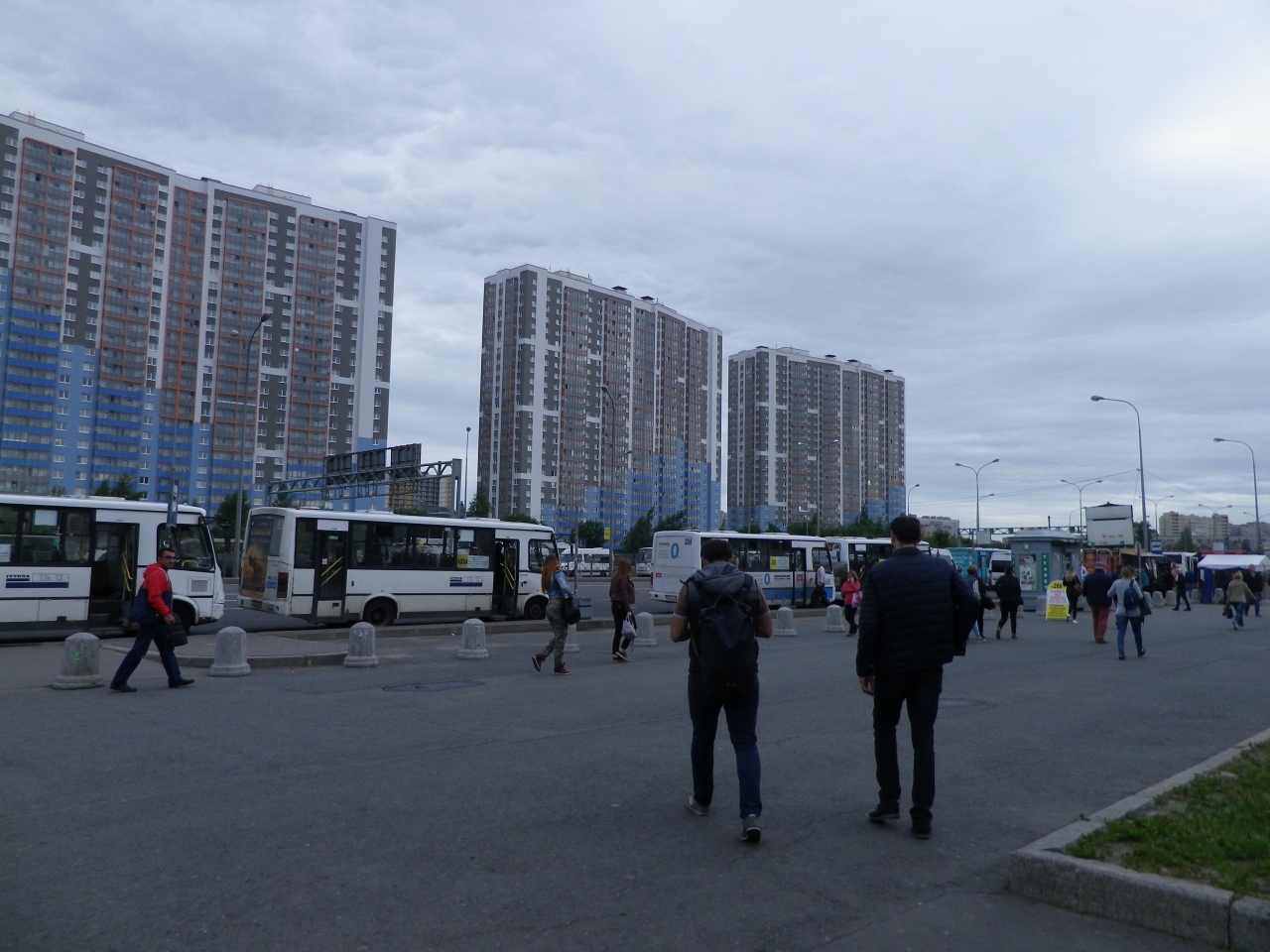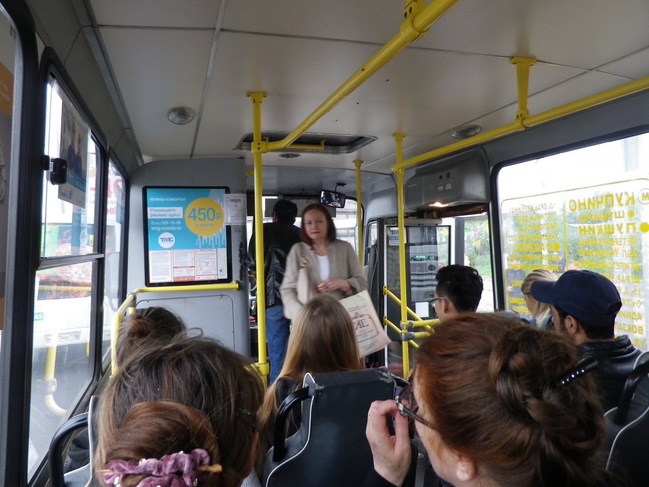 バス停の標識があるのでそれらしき所に行き、行き先が「メトロ・モスコフスカヤ駅」または「メトロ・クプチノ駅」となっているものに乗り込む。運転手に念のため行き先を確認するのを忘れずに。