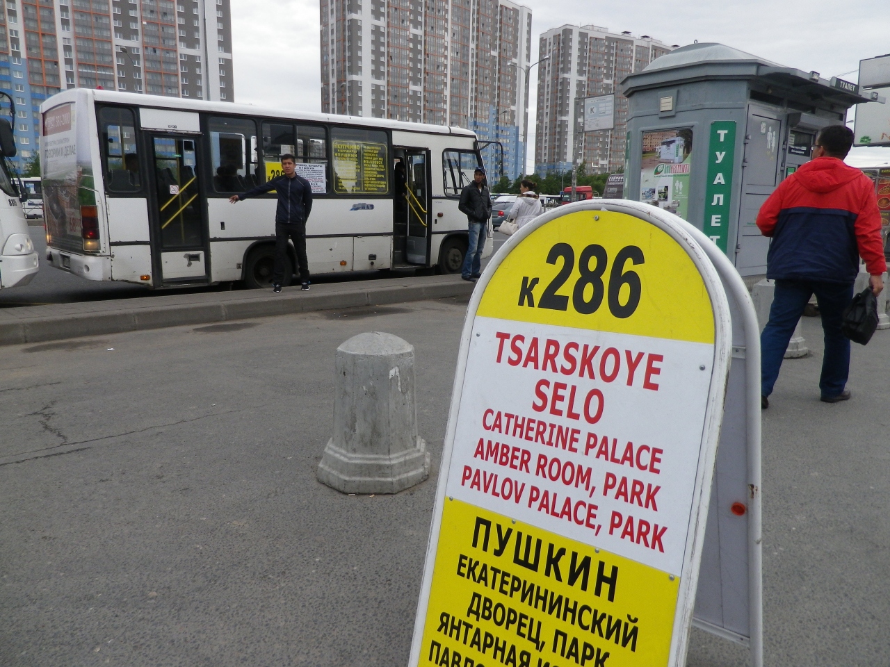 クプチノ駅は駅前があまり広くない為、迷う要素が少ない。更に「286号、ツァールスコエ・セロ行き。エカテリーナ宮殿」と英語(とロシア語)で書かれた看板が出ており、案内人もいる。観光客らしき人が前述の看板に近寄っていくと案内人が「エカテリーナ・パレス!エカテリーナ・パレス!」と連呼してマルトルーシカに誘導してくれる。
