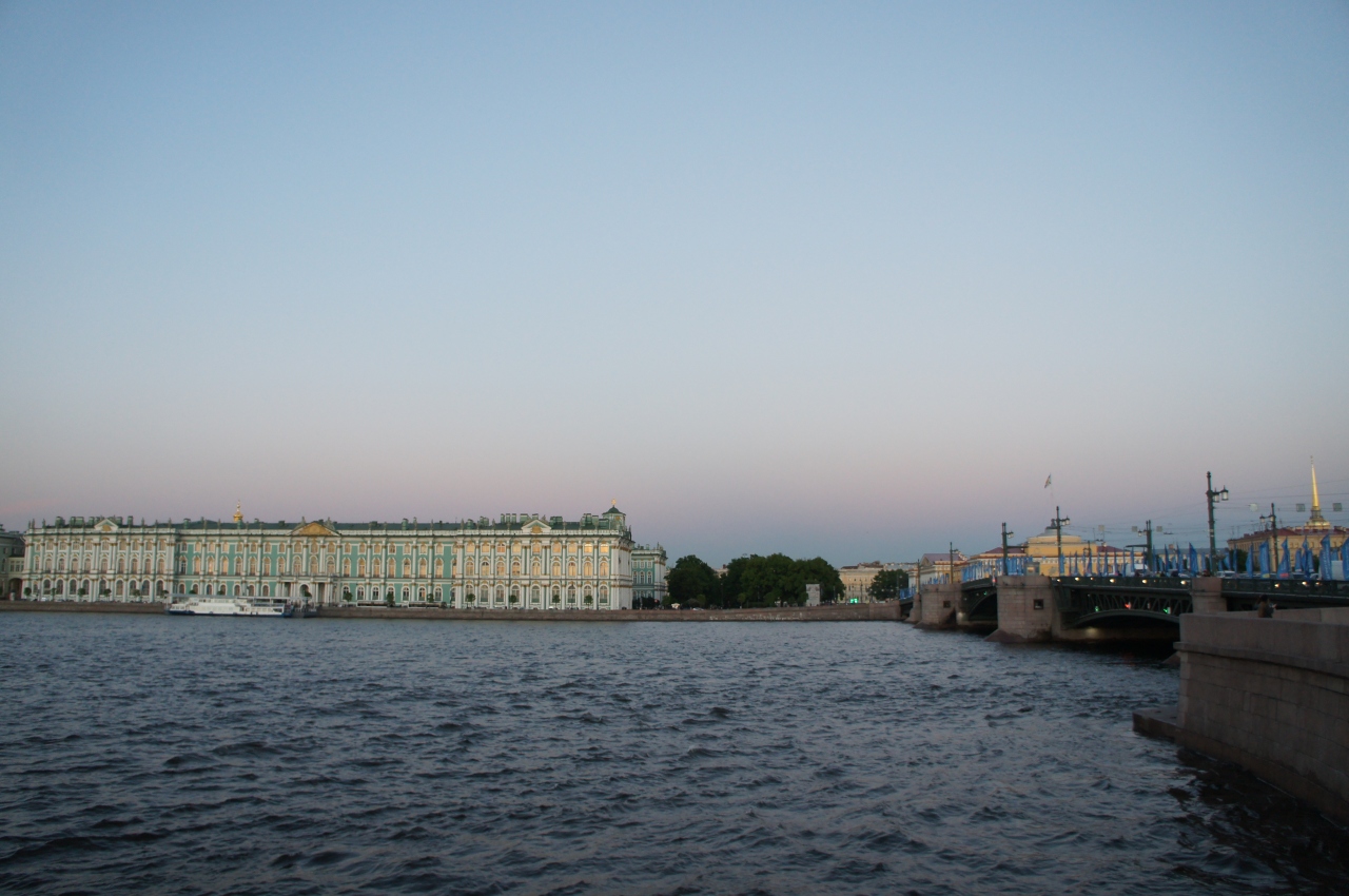 大きな川です。エルミタージュ美術館側からネヴァ川の向こうに見えるペトロパヴロフスク要塞や聖堂の尖塔、ペトログラード側やヴァシリエフスキー島から川越しに見る旧海軍省やエルミタージュ美術館、どちらもとても美しく川面を渡る風も心地よくて、天気が良ければ川沿いを散歩するのも楽しいです。