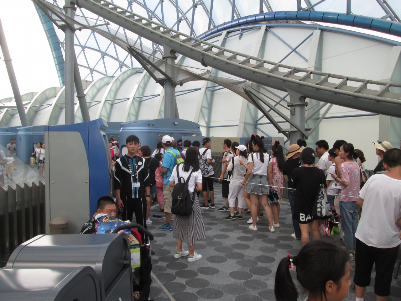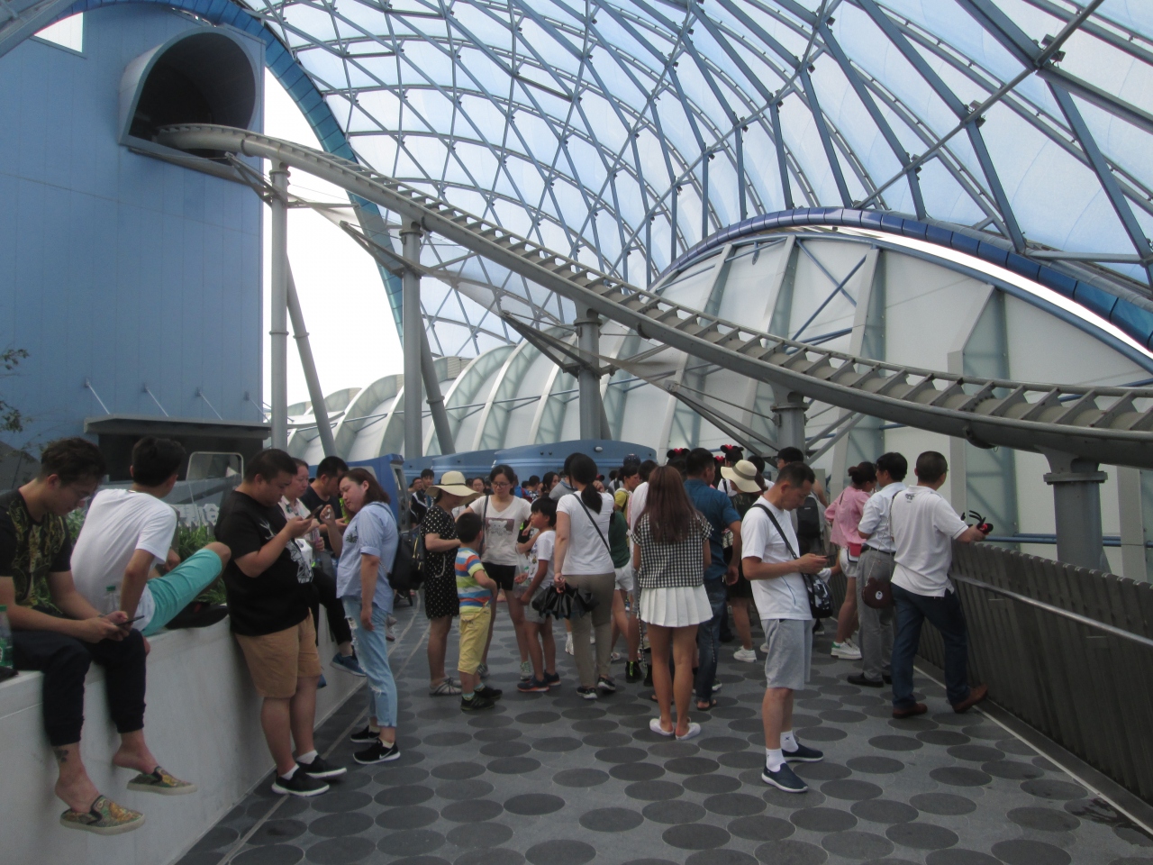 トロンライトサイクルパワーランの入口にはスタッフが立っており、荷物を持参していないかチェックを受けます。財布などの貴重品は中に持ち込めました。どうしても、ある程度、列に並び待たされることがあります。待機中の必需品であるスマートフォン、カメラ は持ち込み可能でした。