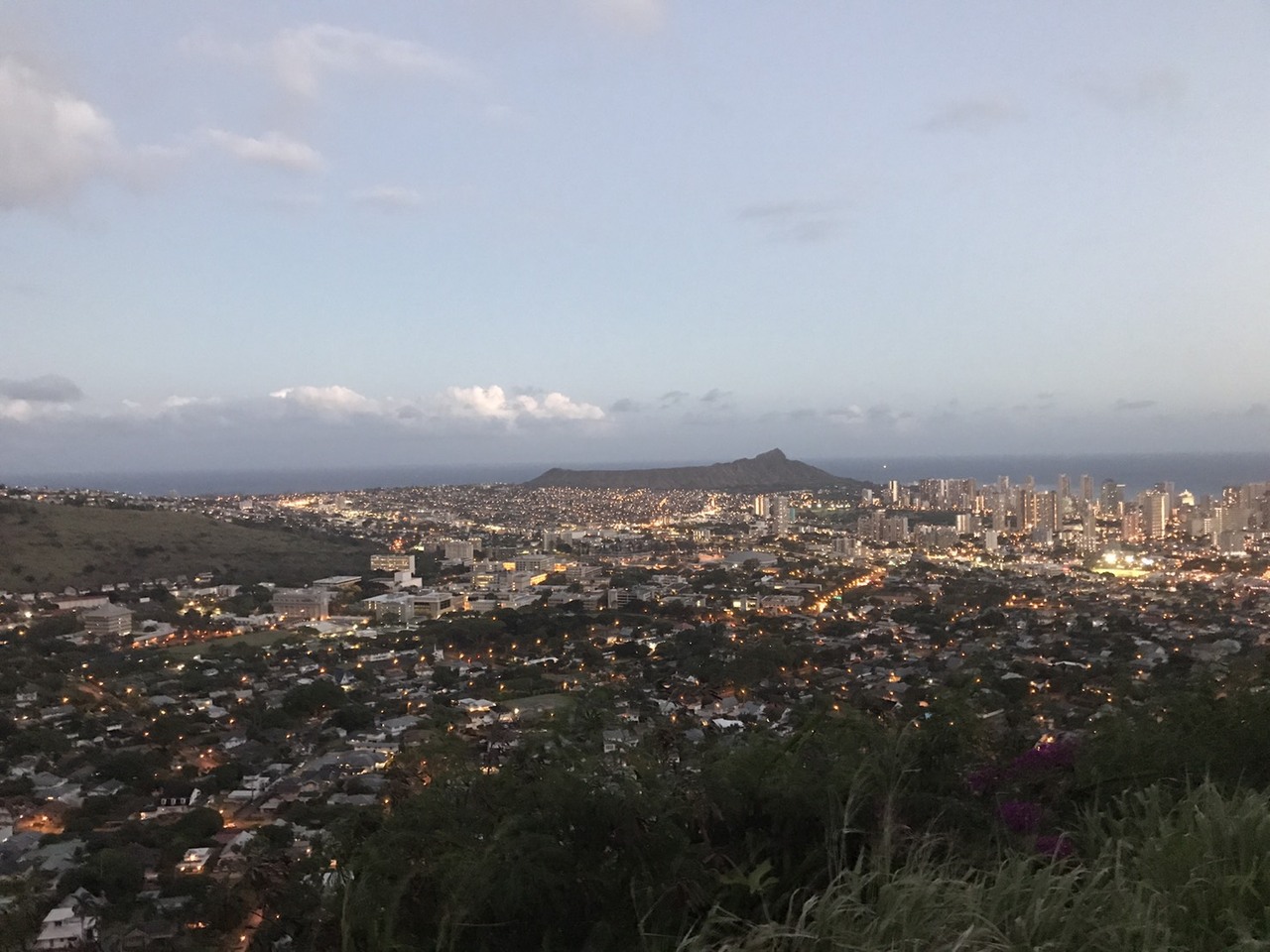 ホノルルが一望できるタンタラスの丘には、夜景を見るツアーがありますが、ディナー付きではないオプショナルツアーに参加してみにいきました。初めては、夕方の夕日が沈みだす頃にみました、そのあと暗くなるのを待ち、夜景はとても綺麗でした。