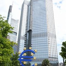 EUの金融を担う銀行はフランクフルトにあるんですね。高い近代的な建物の前の広場にある、青と黄色のユーロマークのオブジェがトレードマーク。大きくて目立つので、観光客が写真を撮っていきます。観光スポットが少ないフランクフルトではこれも立派な観光スポットになっています。