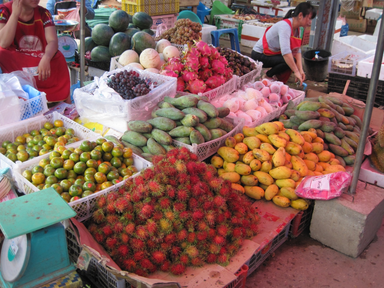 郊外にある大きな市場です。雑貨や食品が沢山売っていて、現地の人の生活を感じることができました。野菜や果物の中に、メコン川産の魚やカエル、うなぎのようなものも売ってました。特に買うものはありませんでしたが、売っている人達はセカセカしていないので、市場の中をのんびり散歩すると楽しかったです。美容院で安くカットもできました。