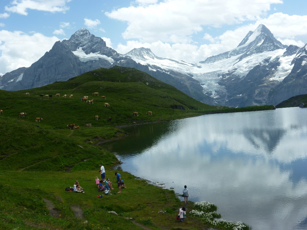 フィルストから歩きてきました。初めてのハイキングだったのでちょっと足が痛くなりましたが、美しい景色がそれを消してくれました。湖の傍でシートを広げてランチをしている家族がいました。あれ、いいな。私はベンチでパンを。でも牛がすごくたくさんいて、怖いくらいでした。