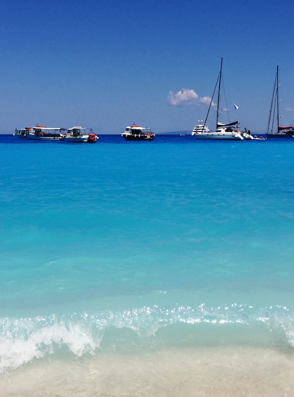 “11時から14時までは多くの観光客が来るので避けるように”と聞いていたのでそのつもりだったんですが、朝からレンタカーの配車が遅れたりBlue Cavesの観光に1時間もかかるとは思わず・・結局ビーチに上陸したのは11時。入れ代わり立ち代わり船がやって来て、本当にものすごい船と人で、美しいビーチをゆっくり堪能することは出来ませんでした。