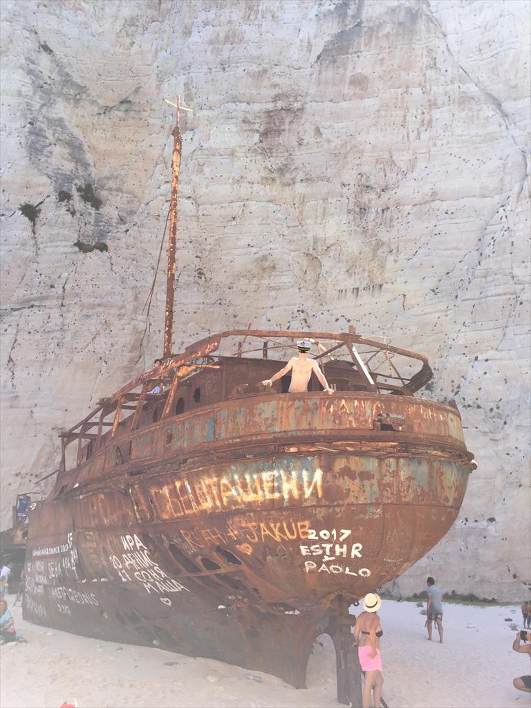 Agios Nikolaos港近くの宿から、ビーチにはPotamitis Brothersのツアーで、展望台まではレンタカーで行きました。海の色が本当にキレイで、展望台からの眺めは絶景です。主人は難破船がとても気に入ったようでした。