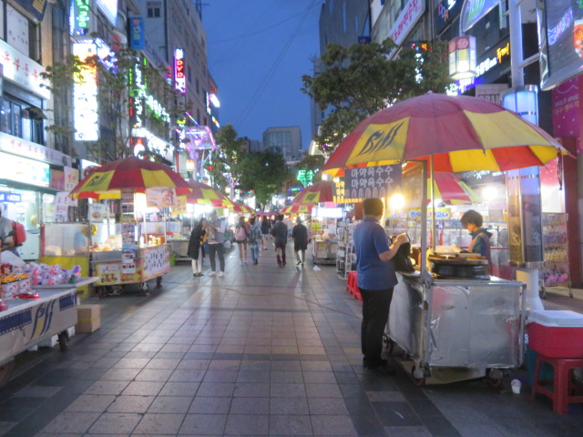 釜山の南浦洞エリアにあるグルメスポットです、BIFF広場・BIFF通りには多くの露店・屋台があり、いつも賑わってます、夜は特に人だかりがしてます、ホットクやトッポキなど食べる人がここに来ます、格安で食べることが出来るので人気があるようです、ここは特に若い人が多いです、周辺に映画館やカラオケ店があるからかと思います。