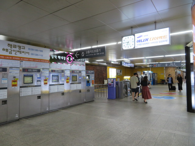 地下鉄1号線の駅でチャガルチ市場の最寄り駅です、10番出口を出てすぐです、新東亜市場や農協ハナロマートもすぐです、若者に人気があるBIFF広場もそばにあります、ここから隣の南浦洞駅までは地下街の商店街になっていて買物を楽しむことが出来ます、駅構内には案内所があります、日本語の表示もあり便利です。