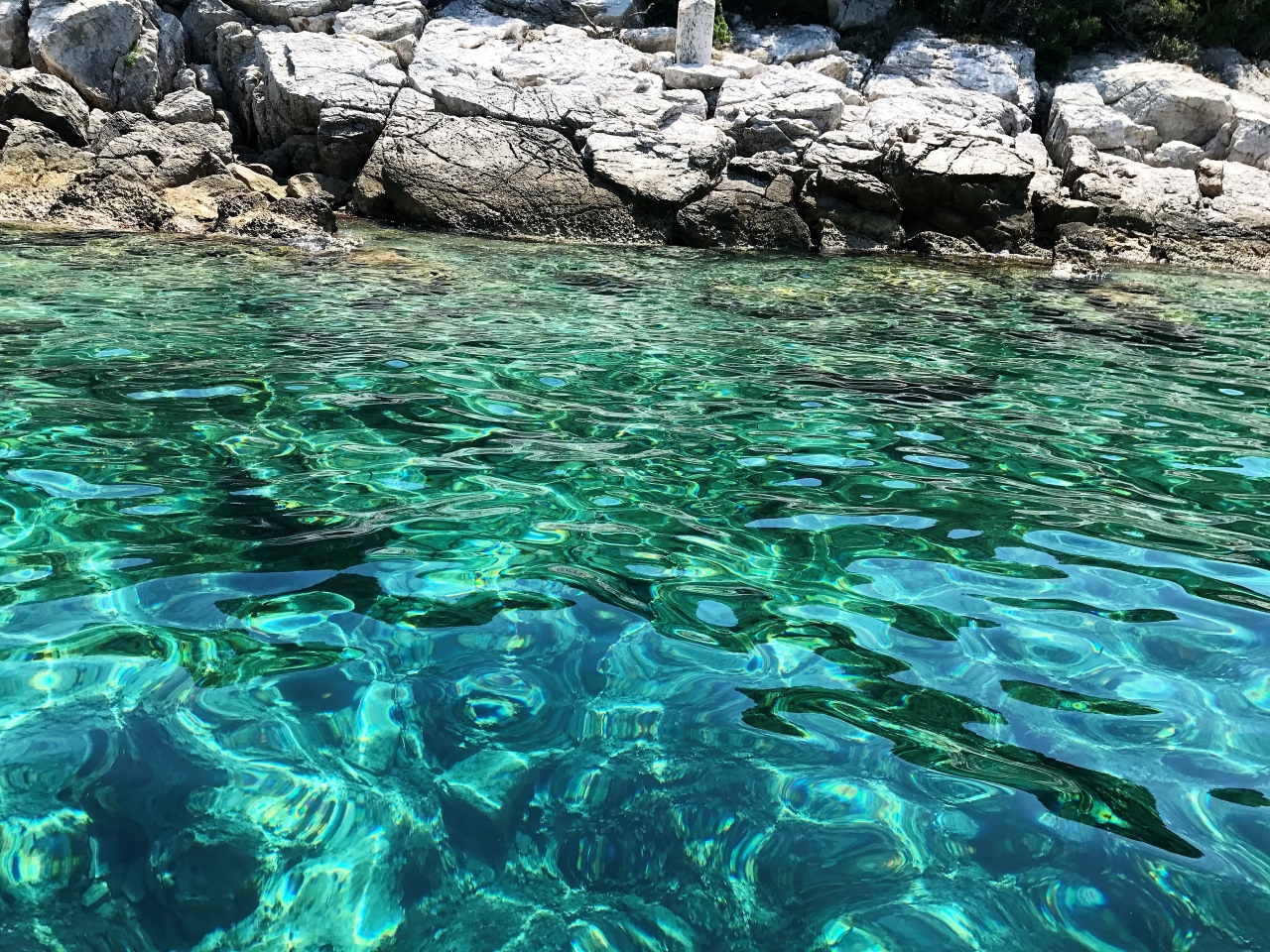 私たちが乗ったのは、ロクルム島の手前まで、旧港をぐるっと一周する船です。船の底がグラスボートになっていて、海の中ものぞくことができました。小さな魚が泳いでいました。海の美しい色を満喫できました。