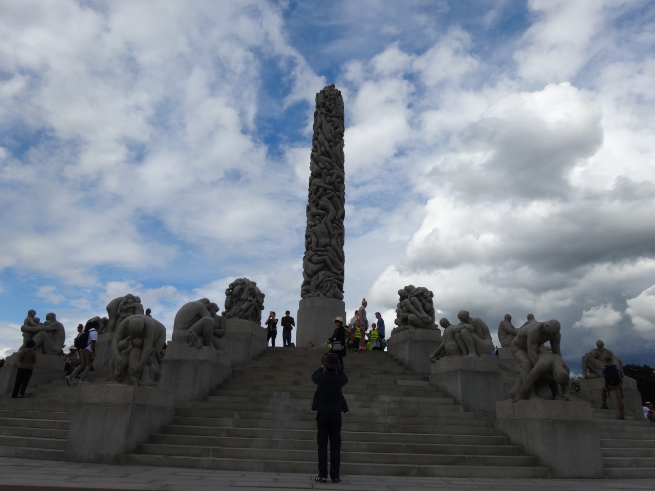 ヴィ―ゲランの彫刻作品がたくさんあって触り放題というので有名な公園です。怒りんぼうの像は入り口から橋を渡った時の左側にあり、触られ過ぎて左手がてかてかに光ってました。たくさんの人がくつろいでいて楽しいところでした。
