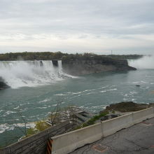 カナダ滝は別名ホースシュー滝。その名の通り馬の蹄鉄に例えられています。ナイアガラといえばこちらの滝を思い描く人も多いのではないでしょうか。テーブルロックから見るカナダ滝は圧巻の迫力です。こんなに近くに見られるとは思いませんでした。