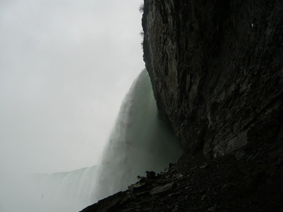 カナダ滝を真裏から見ることができるアトラクションです。エレベーターで下に降りて、長いトンネルを歩きます。トンネルを抜けると滝の真横に!こちらもカッパを貸してくれますが、濡れます(笑)