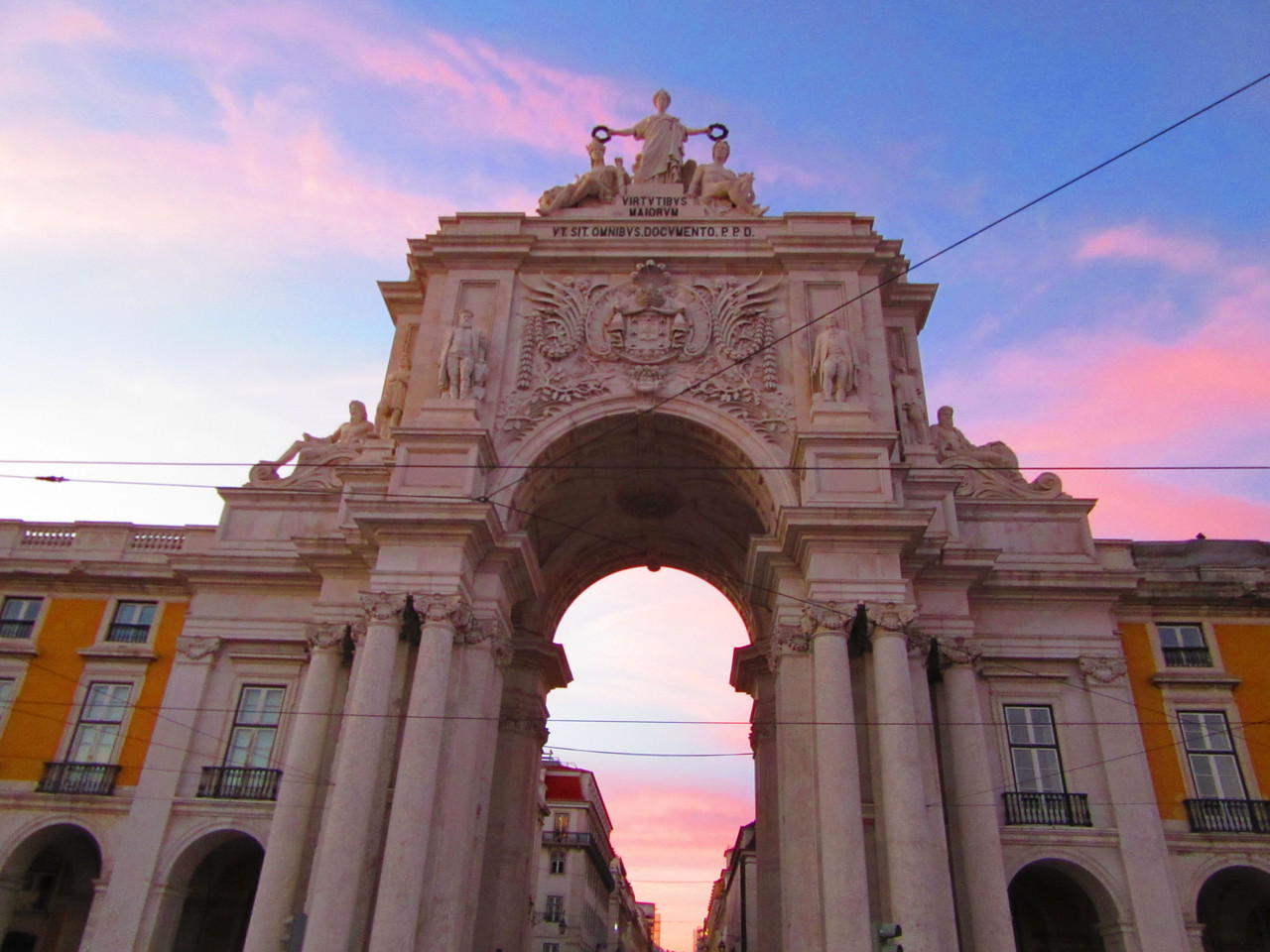 ロシオ広場からアウグスタ通りをまっすぐ行くとテージョ川沿いにあるのがコメルシオ広場です。周囲にはカフェや土産屋さん、インフォメーションもあり一日中賑やかな場所です。