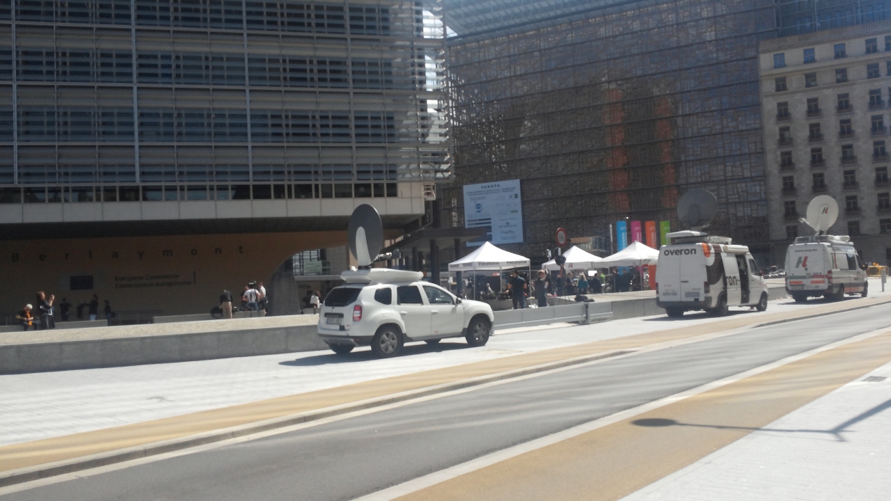 英国が欧州連合を離れた投票の翌日に、EU本部とあった旗と共に、写真を撮ることは記念する価値が高いです。メディアはEUの役員に報道に準備しました。建物はロイヤルの代わりに、とても強い商業的の設計にします。