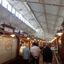 狭い通路の両側に小さなお店が並んでました。チーズやオリーブ、ハム、お惣菜などを売るお店もありましたし、入口の酒屋さんではワインだけでなく、プラスチックのワイングラスも置いてありましたので、ここで購入して、近くの広場などで青空の下でお酒を飲むのも良さそうに思えました。