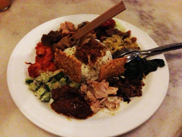 外国人観光客に人気のあるインドネシア料理のレストランMade's Warungには、現地料理の定番料理と合わせて欧米人観光客向けにピッツア・パスタ・サンドウィッチなどのメニュー豊富なレストランがあるので、たいへん重宝します。妻と私はナシチャンプル、ナシゴレン、サテなどのインドネシア料理、子どもたちはパスタとトロピカルフルーツのスムージーなどを注文してディナーを楽しみました。