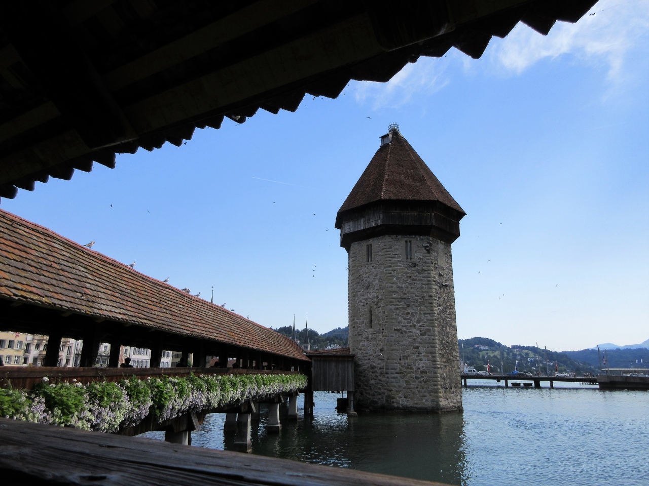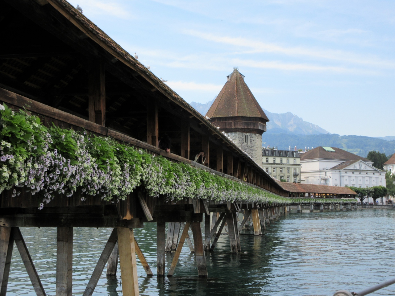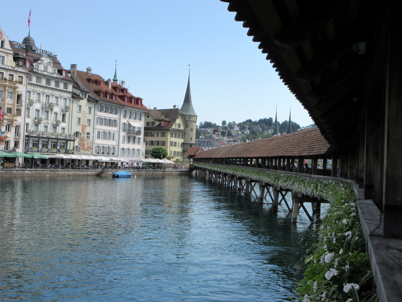 フィアヴァルトシュテッテ湖のそばでロイス川にかかる木製の屋根付きの橋です。