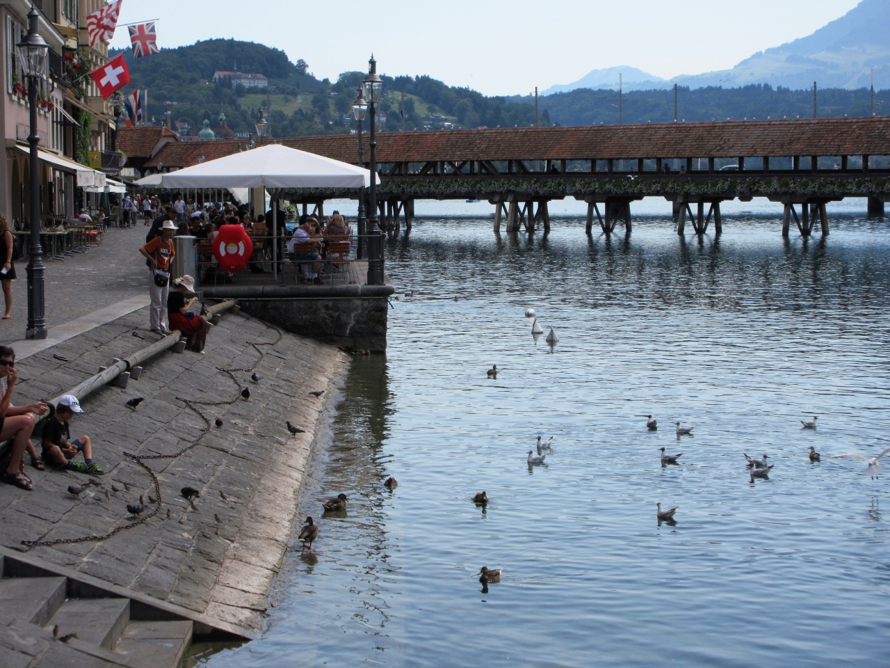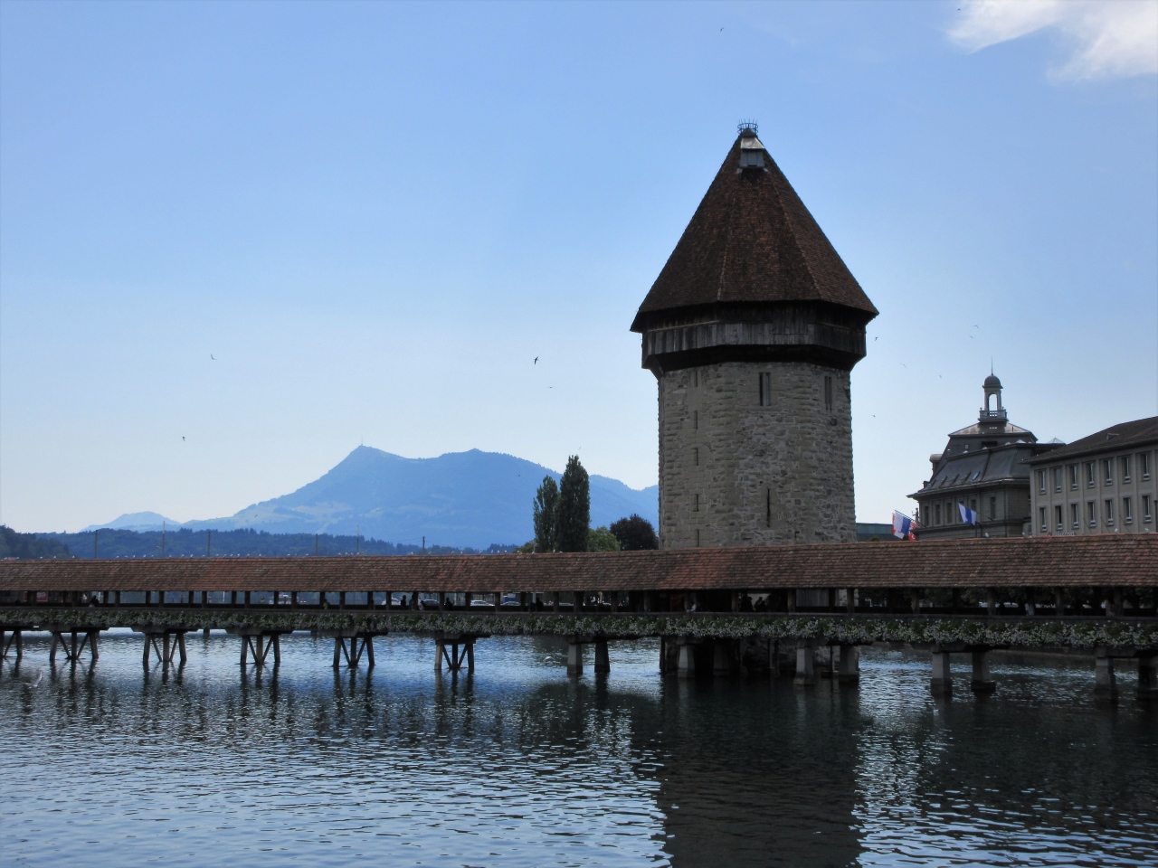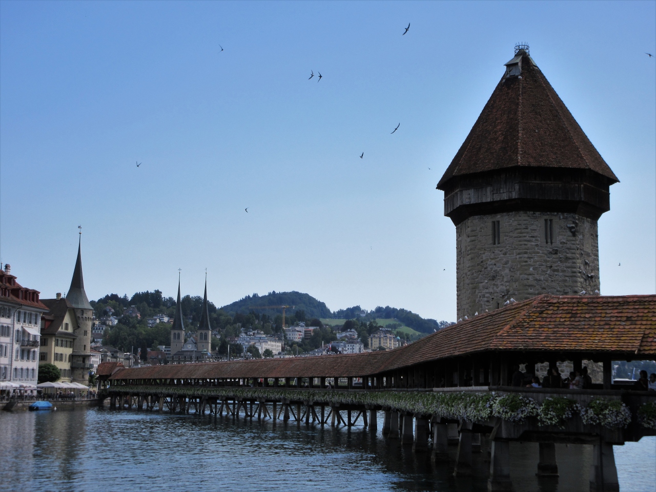 フィアヴァルトシュテッテ湖のそばでロイス川にかかる木製の屋根付きの橋です。