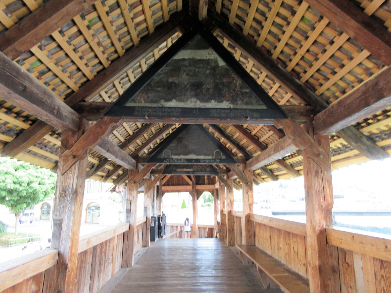 屋根の梁にはルツェルンの守護聖人の人生を描いた100枚余りの連作板絵がかかっています。