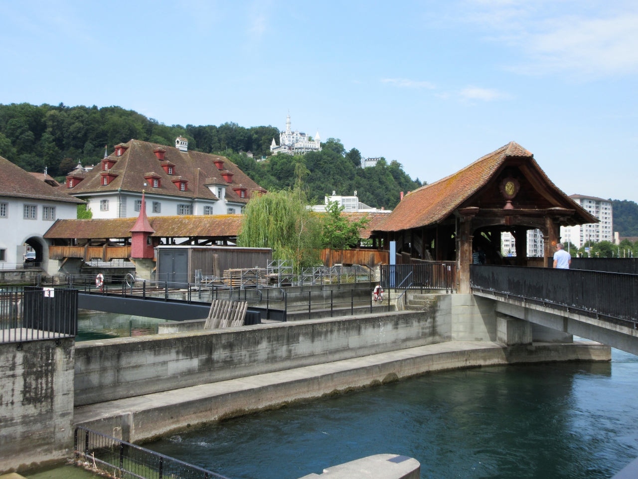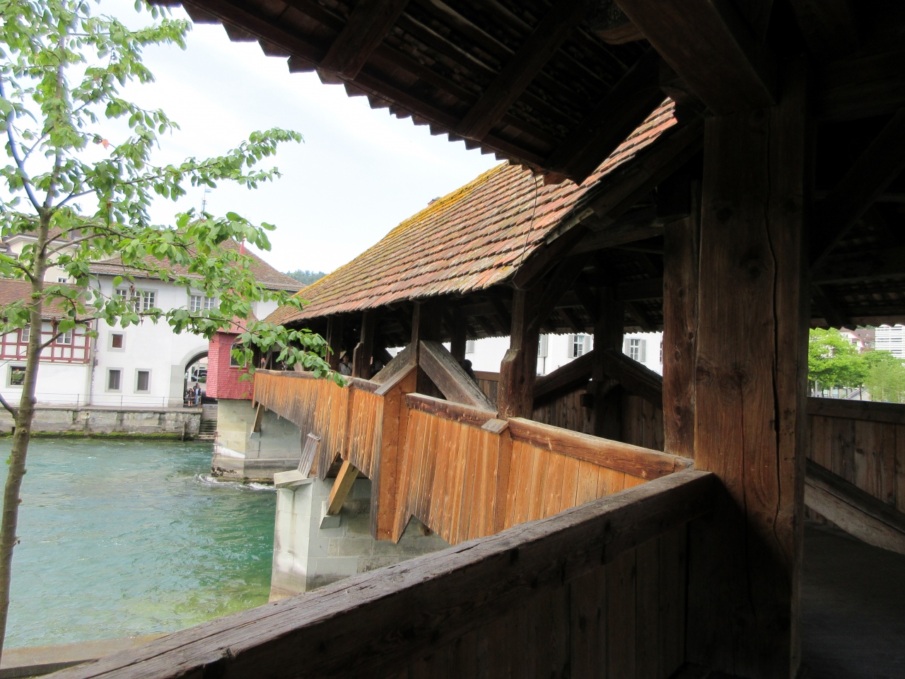 カペル橋よりやや小規模な木造の屋根が付いた橋です。