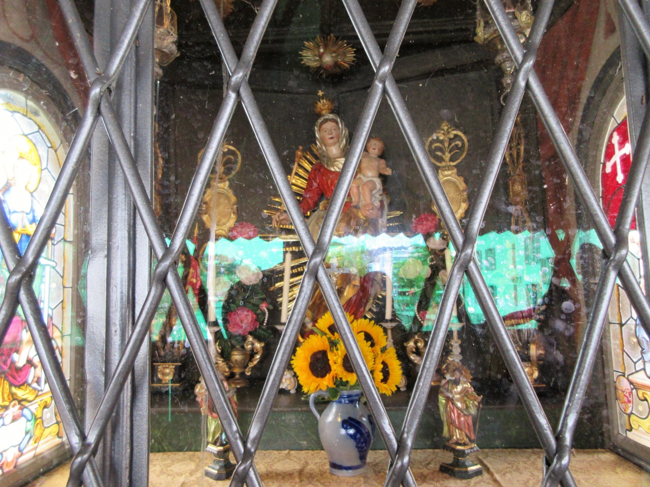 橋の中央には17世紀に設置された地井さん礼拝堂がありマリア像やステンドグラスがありました。