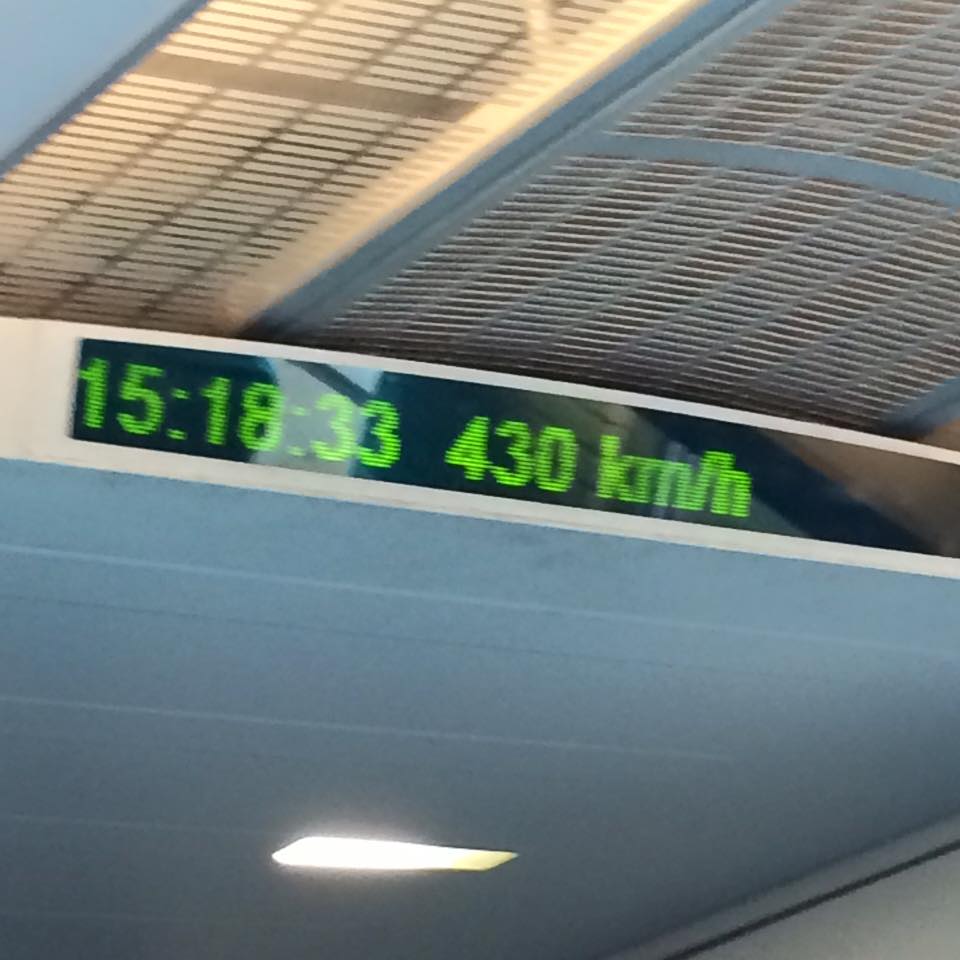 出張の帰り道、上海浦東空港に向かうのに、我儘を言ってオフィスからは方向違いのリニア高速鉄道の駅で降ろして貰い空港まで体験してまいりました。見た目は何かそれっぽいが走り出すと振り子電車や昔の京成電車並みにかなり揺れる。速度を上げると更に揺れはひどくなり最高時速430キロでは、車体が震えているのでカメラのピントが中々合わない。そのままカーブして車体が30度ぐらい傾いた時は手すりを握りしめてしまいました。10分の短い体験でしたが可也スリリングでした。私は2度と乗りません!