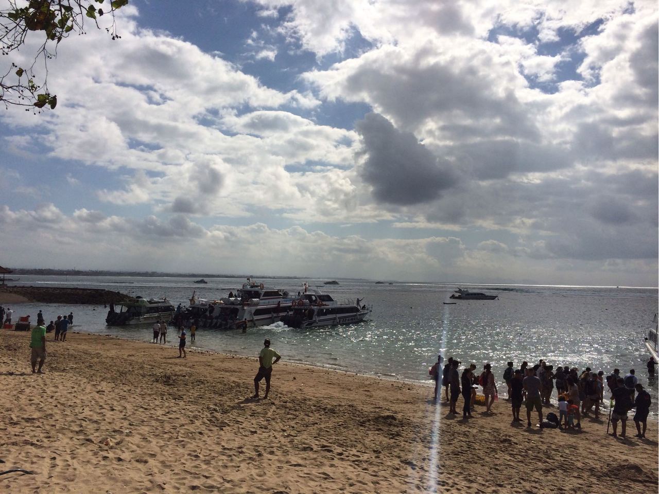朝8時半にホテルを出てからレンボンガン島に行くのにジンバランビーチから船に乗りました。船の時間は結構適当で30分発だったのが40分くらいだったと思います。現地のガイドがいなかったら厳しかっただろう。このビーチはトイレが有料です。ビーチ沿いにクーラーのきいた店はなさそうでした