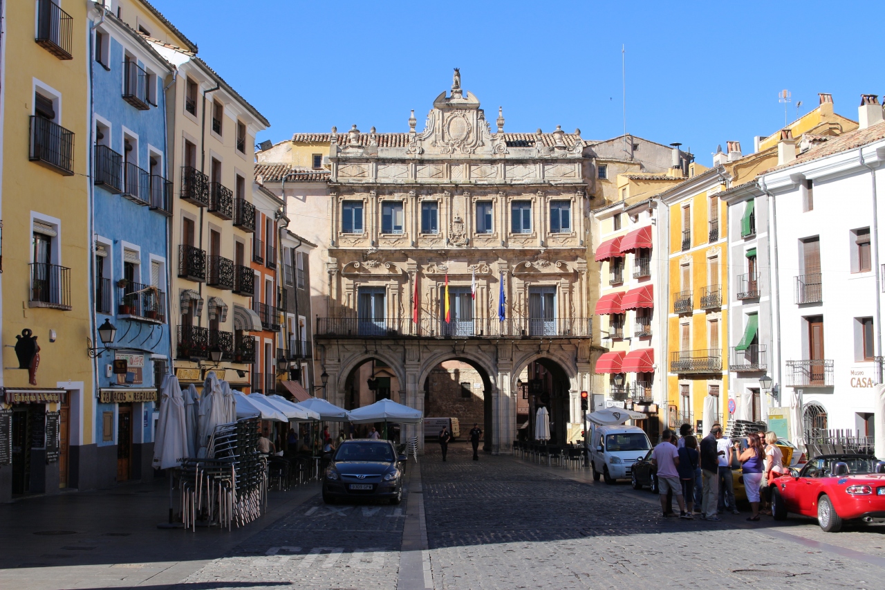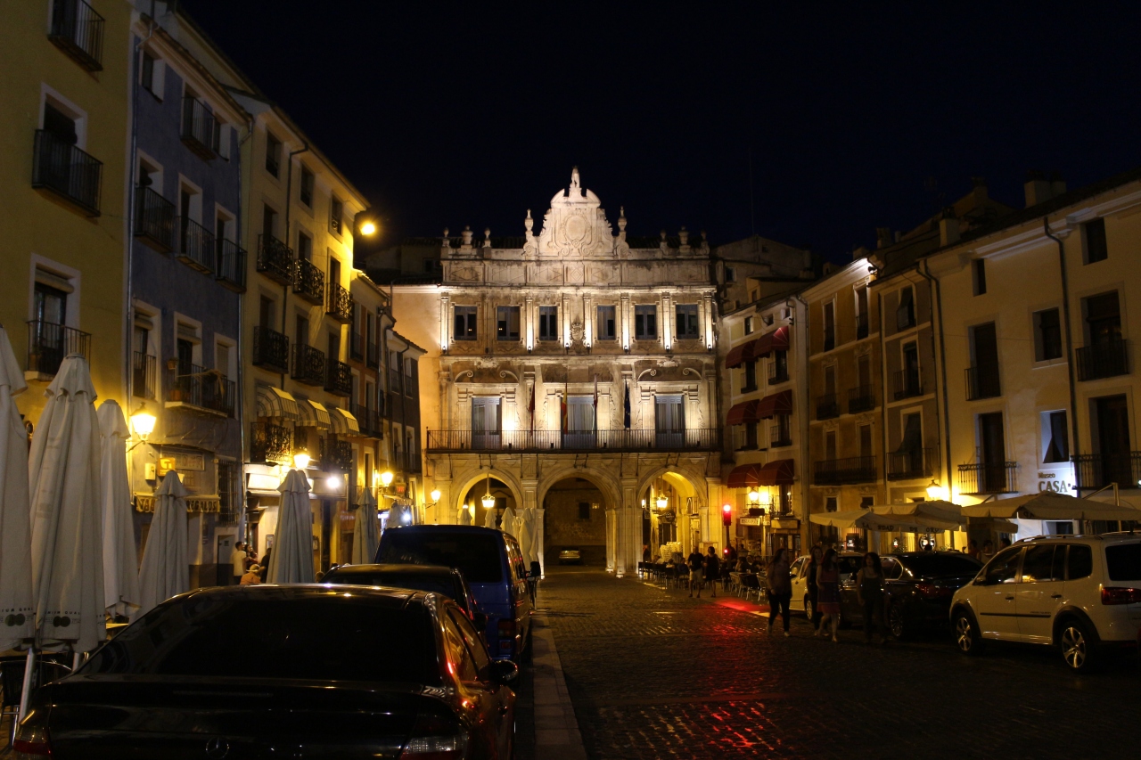 クエンカ旧市街の中心のマヨール広場に面して建っていますが、地階がアーチ式の通路のようになっていて、これが市庁舎とは、少し以外な感じでした。この通路を閉じてしますと、ほんとに籠城できそうな感じです。夜のライトアップもきれいでした。