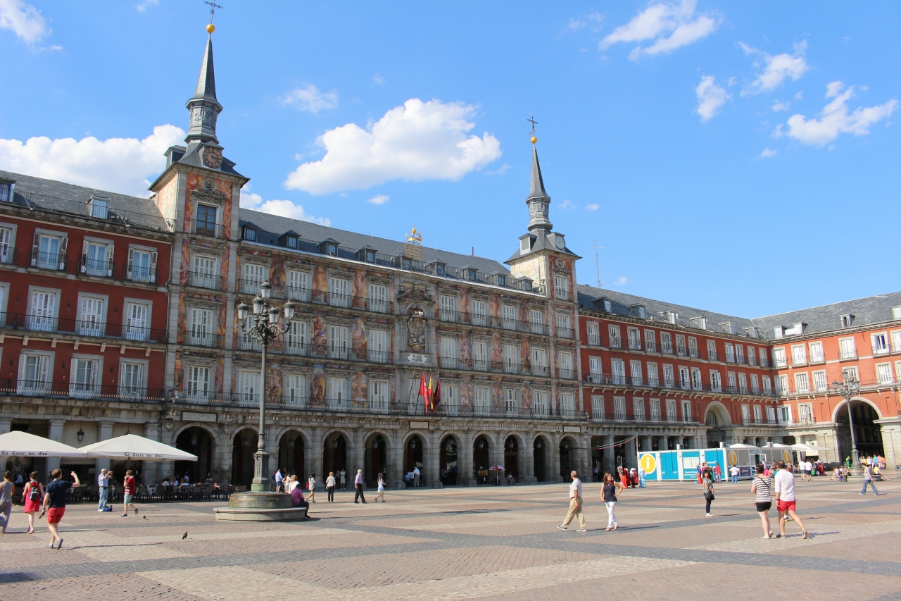 スペインには、中心広場としてマヨール広場がある街がいくつかありますが、首都のマドリッドの広場としては、少し地味でさびしい感じを受けました。他にも広場がいくつかあって、集積度が分散しているからかもしれません。ただ、人でごったがえしている、プエルタデルソルよりも、歴史を感じるよい広場だと思います。