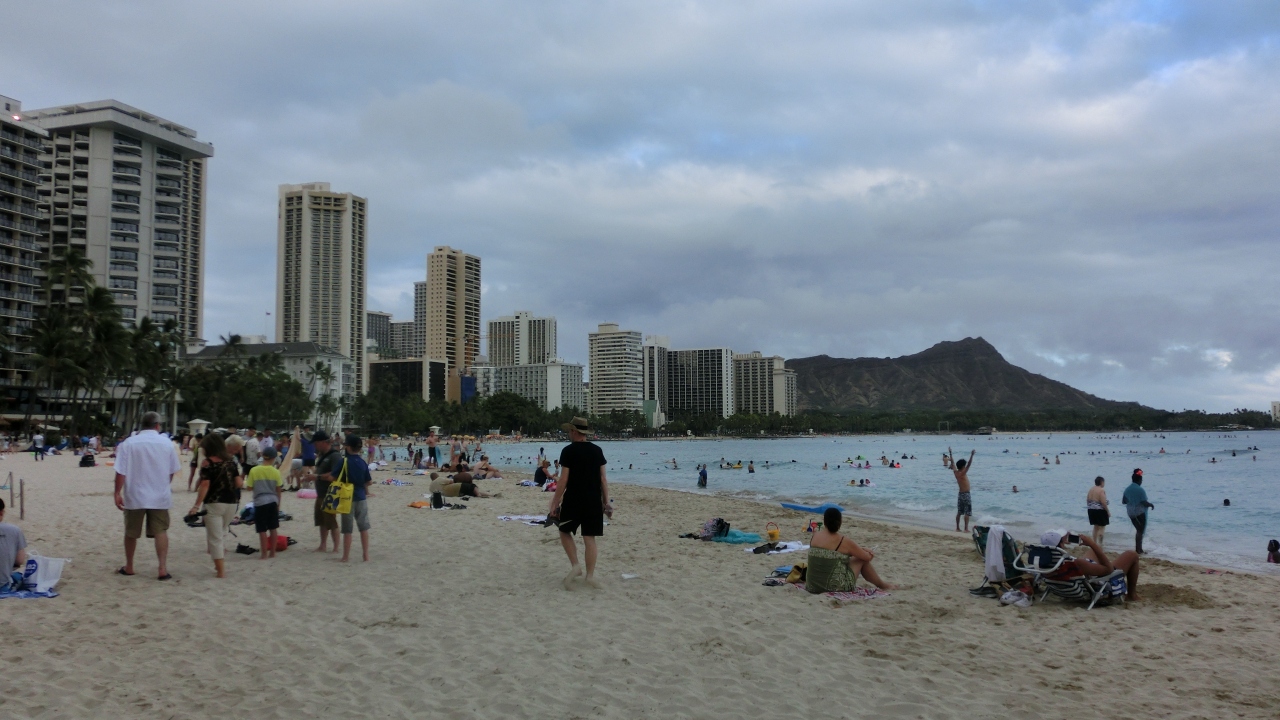 ハワイのビーチと言えば定番のワイキキビーチ。