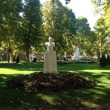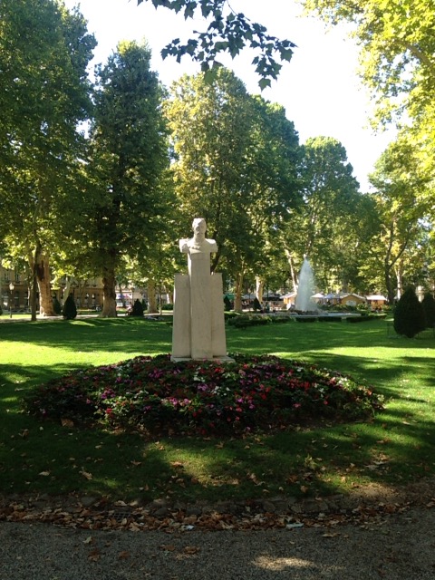 ザグレブ中央駅の向かい側に広がる広場は3の広場に分かれており、一番奥の広場です。斜め向かいに日本大使館の建物があります。広場には偉人の銅像や噴水もあり、芝生のはえている広場に花が綺麗に植えられておりベンチもあるので休憩にもよい。