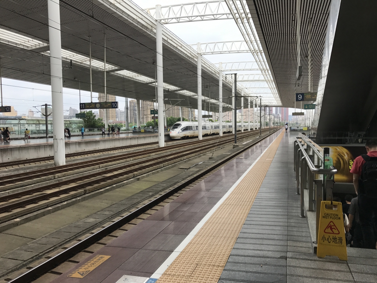 高鉄ホームは2高架の面4線のホームの中央に通過線、在来線は地上ホームの造りになっている。