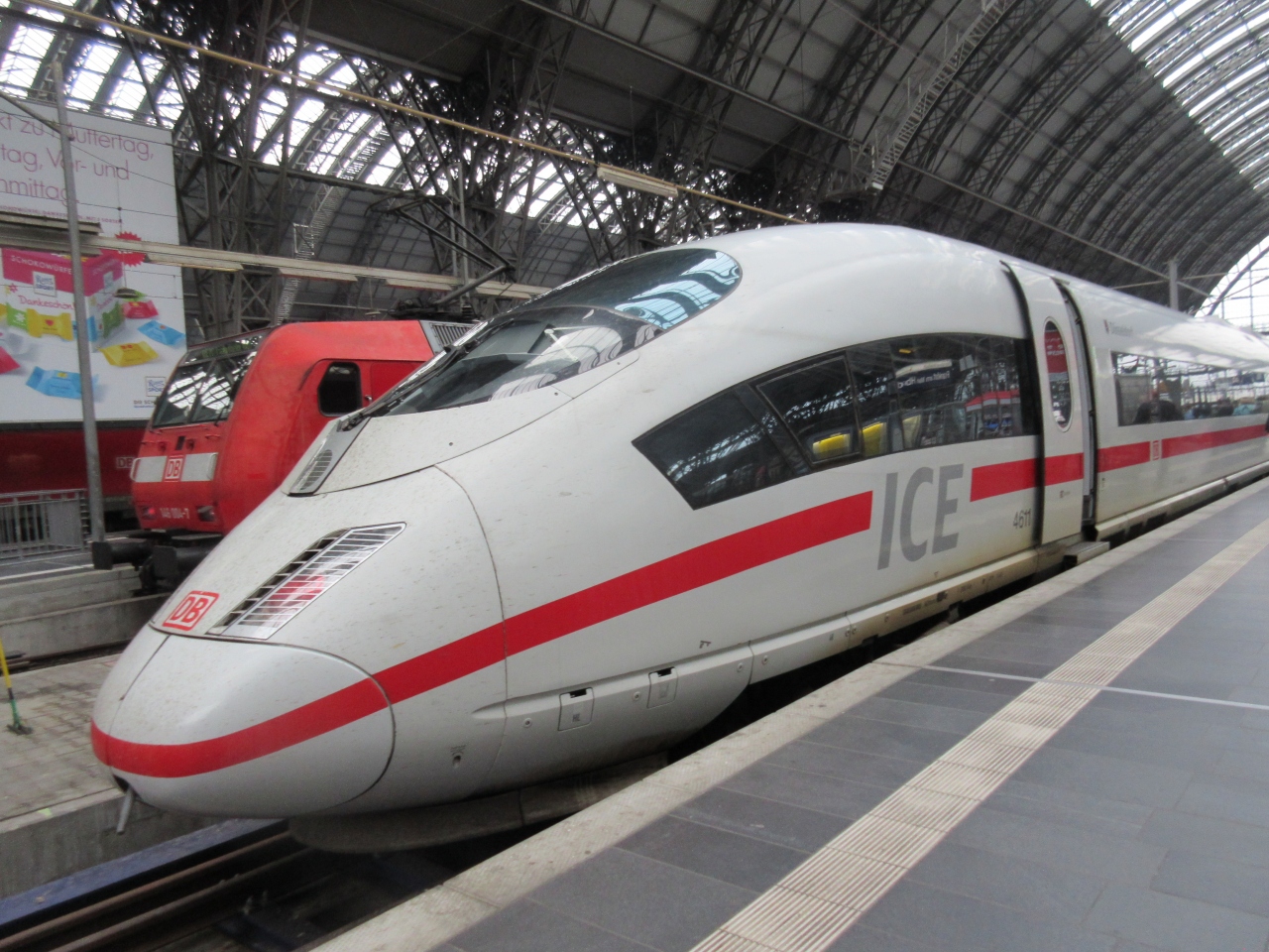 日本の新幹線に相当する電車。スピードは一般の電車と同じ線路を使っているためあまり出せないように感じた。フランクフルト~ケルンまでは専用車線があるため1時間5分で行くことができ「速い」と感じた。2階建ての車両がある。乗り心地はまあまあであった。