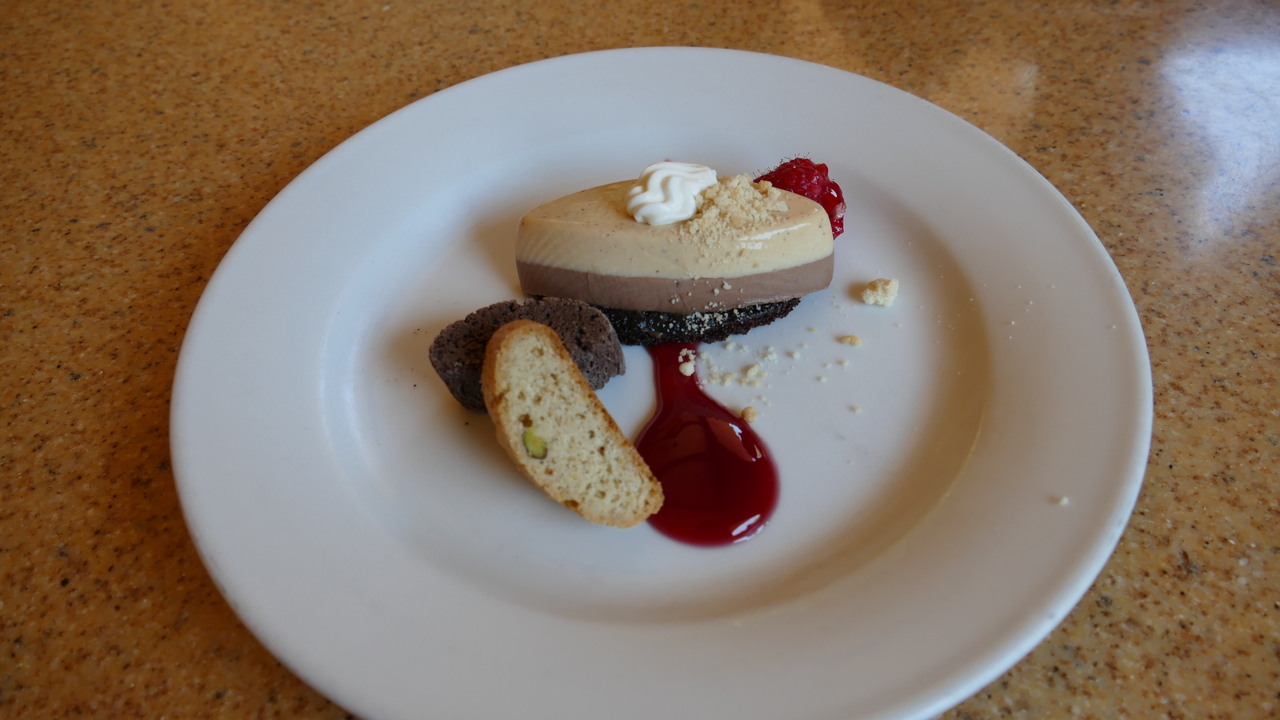 前菜2種類、メイン9種類、デザート2種類から選びます。パンはついてきます。