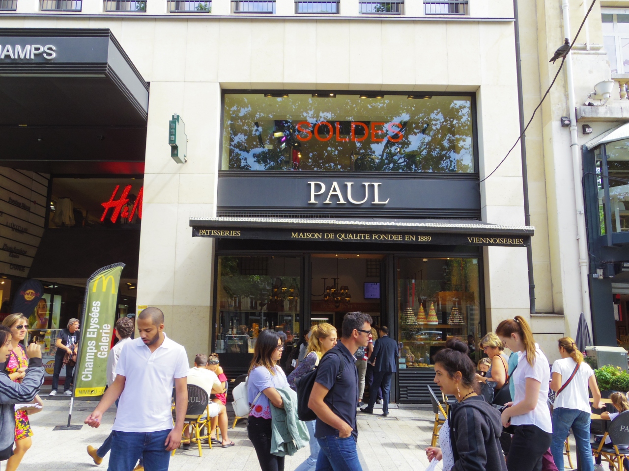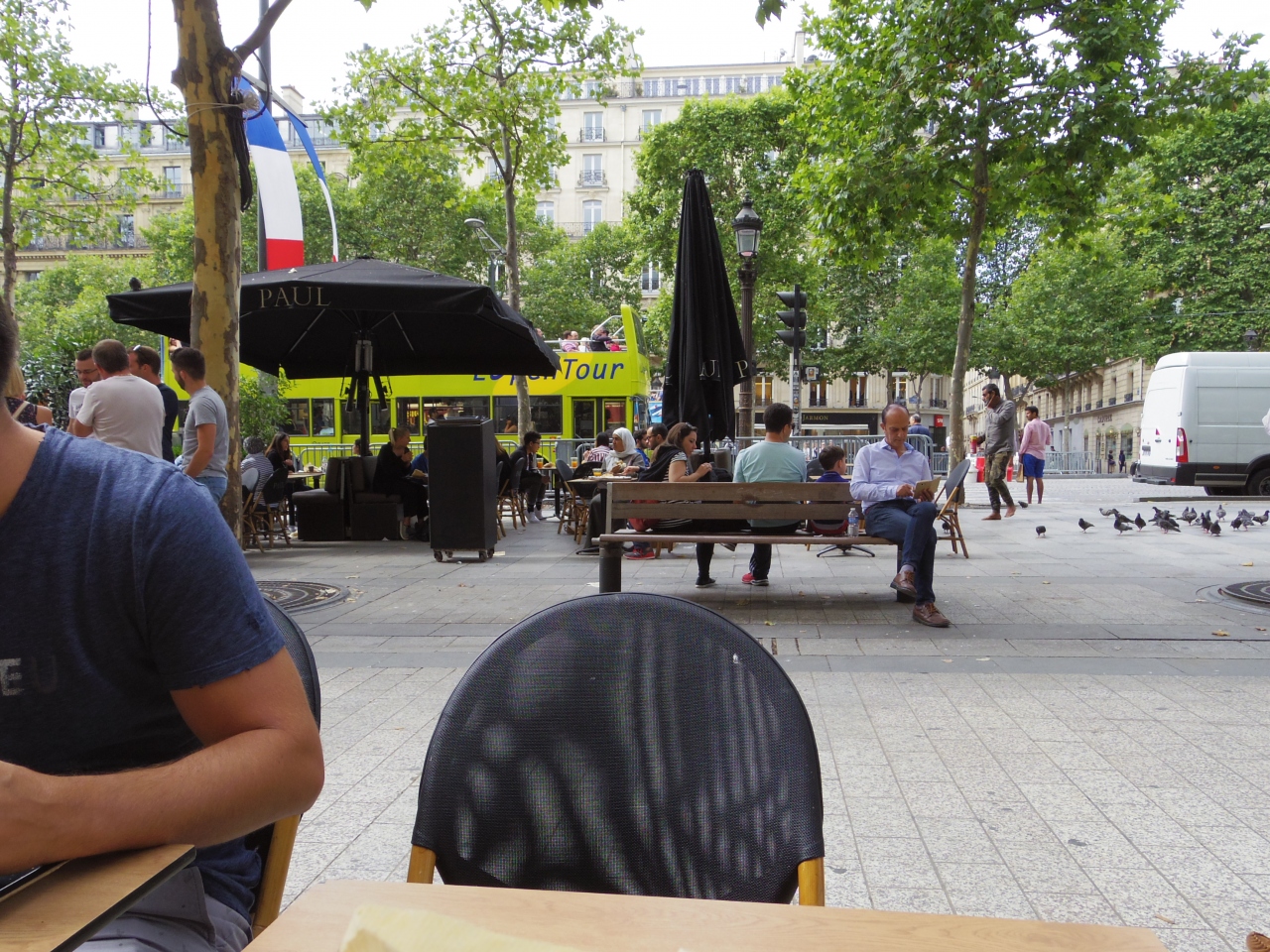 日本だと高級パン屋さんだけど、パリでは普通のパン屋さん? シャンゼリゼのテラスで食事という夢を実現しやすい(笑)
