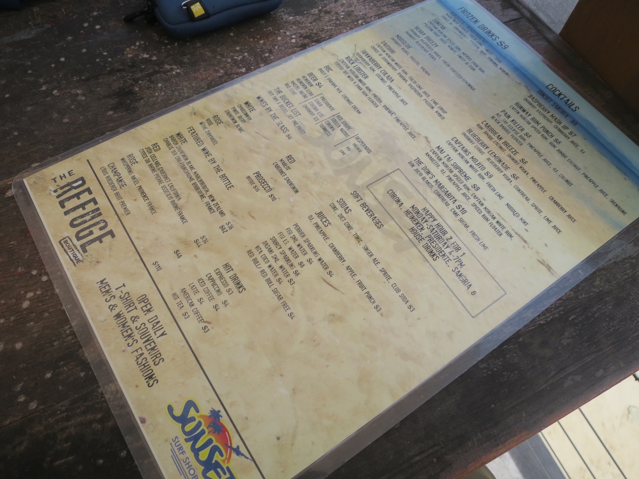2年ぶりにマホビーチ訪問。飛行機見学に欠かすことの出来ないバーですが、以前とくらべて店の規模が奥に拡大していました。中庭のような場所にはプールなどもありましたが、ビーチに面した特等席の数は以前と変わりませんでした。サーフボードのみならず店内にモニターが設置されて飛行機の離着陸時間が表示されるようになっていました。