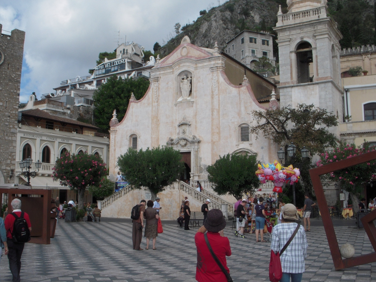 タオルミーナの町の真ん中を通っているウンベルト一世通りを、メッシーナ門からカタ―ニヤ門に向かって歩いて行くと左側にタオルミーナの町の展望台を兼ねたような4月9日広場が現れました。
