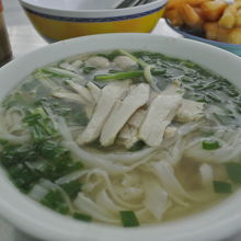 一日に500杯も売れることもある、鶏肉フォー(フォー・ガー)の専門店です。狭い間口の入口に2階建ての建物。朝食を食べに行きましたが1・2階ともお客さんでいっぱいでした。日本円で300円ほどのフォーは澄んだあっさりしたスープですが、旨味もきちんとあって美味しいです。