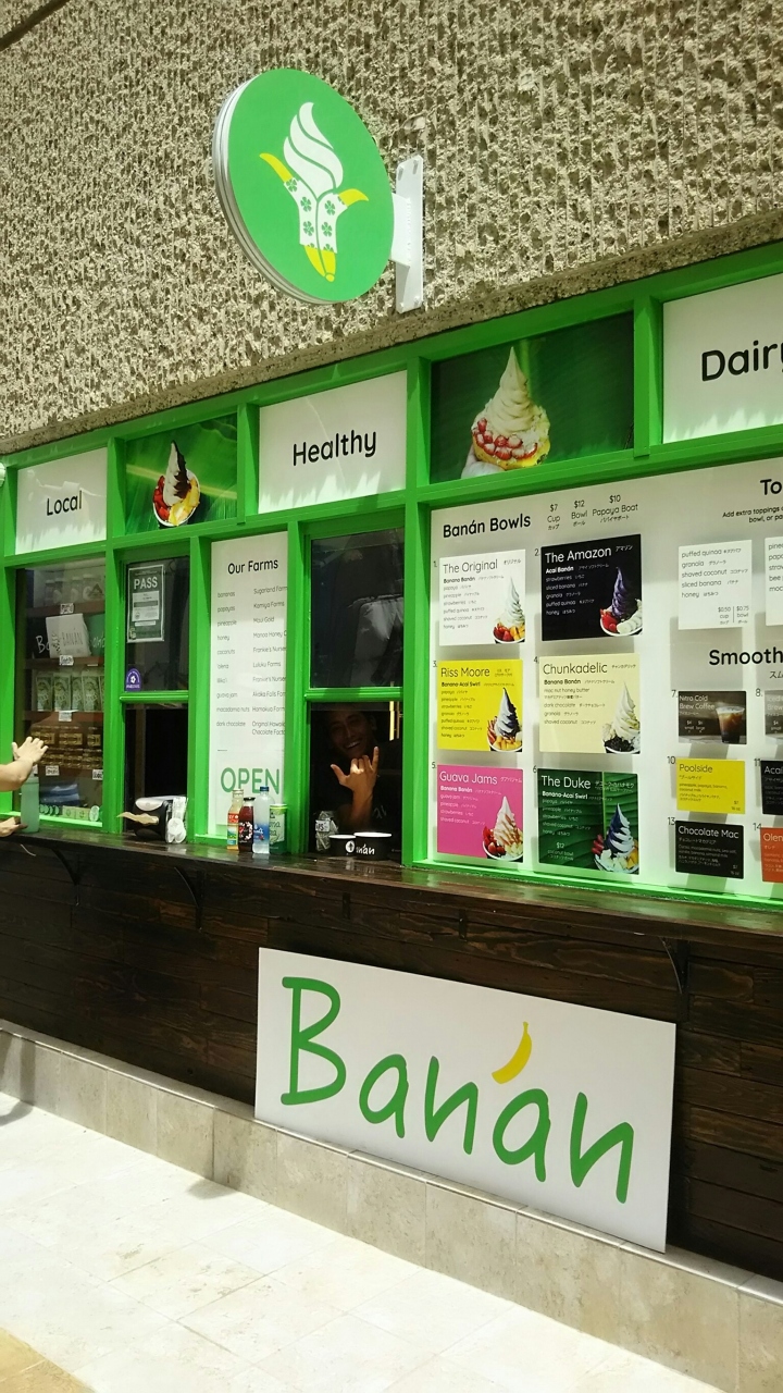 以前テレビで見たバナンに行って見たかったのですが、時間がなくてあきらめていました。友達がワイキキにもできたらしいと言うので、行ってみました。アウトリガーホテルの横のサーフボードが並んでいる道です。オリジナルを食べました。バナナそのものって感じで、あっさりしていて美味しかったです。モンサラット通りまで行かなくても食べられるのがうれしいです。