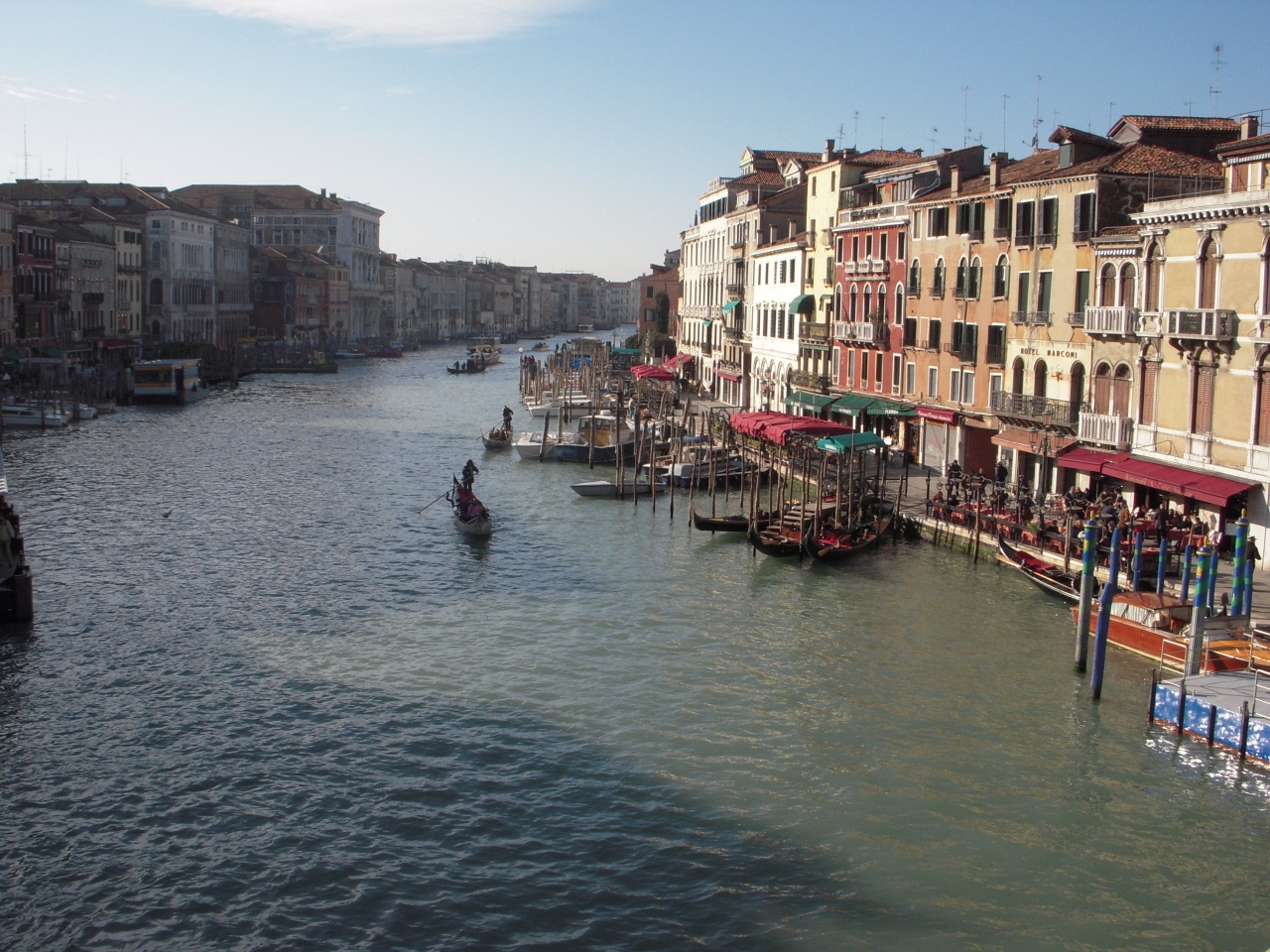 リアルト橋の上から行き交うゴンドラを眺めました。