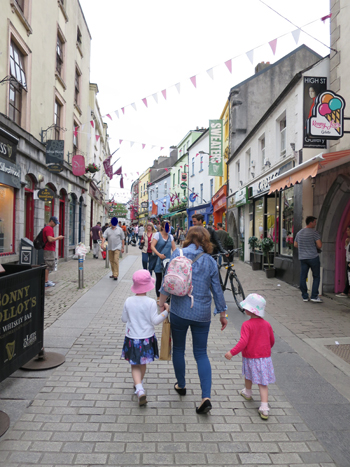 ゴールウェイの繁華街の一角で、とにかく人が多いです。特に夕方、食事時ともなると狭い通りにオープンテラス席がいくつも並べられ、さらに道が混みあいます。