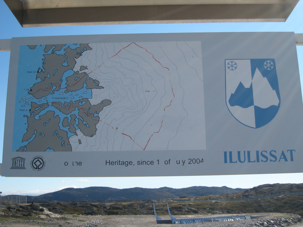 イルリサットに向かう飛行機から、イルリサット・アイスフィヨルド(世界遺産)が見えました。右側からが良く見えたのですが、私の座席は左側だったので、写真自体は、アイスフィヨルドの端の方を撮れただけでした(写真1枚目)。また、真夜中だったので、写真はうまく撮れなかったのですが、帰りの飛行機からも見えました(写真3枚目)。私にとっては、これらで十分でした。