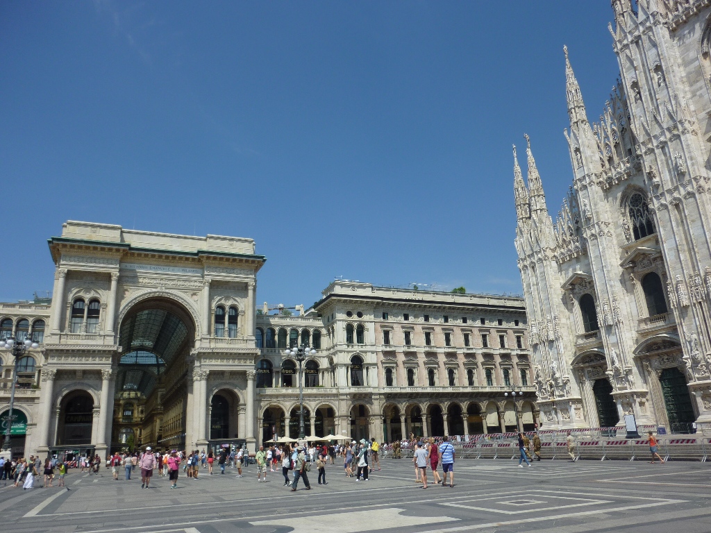 ドゥオモとガッレリアに面した広場です。大きな空間なので、気分もゆったりしました。それほど混雑も感じませんでした。鳩がたくさんいました。ドゥオモに向かって右側にトイレがありましたが有料です。歴史的なたてもののスケールの大きさに圧倒されました。